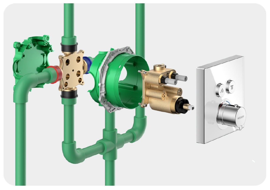 沐浴的核心在于“水”,而水的核心在于“溫”。摩恩仕的基石,在于其內(nèi)置的「專利恒溫閥芯」。